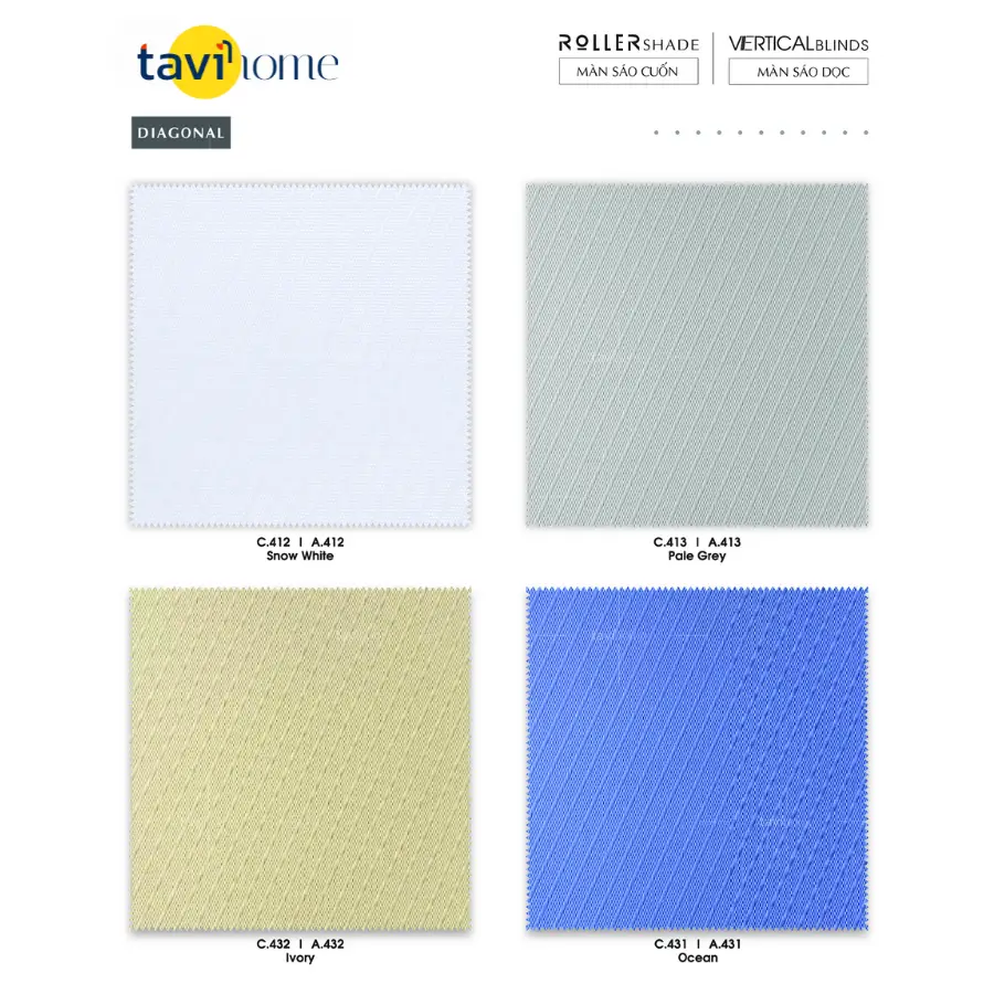 MÀN SÁO CUỐN TAVI ST-DIAGONAL được làm từ vải phủ nhựa có thể che nắng và ngăn ánh sáng, chống bám bụi và hạn chế thấm nước. Màn cuốn thường tạo ấn tượng với phong cách đơn giản mà tinh tế bởi những gam màu nhẹ nhàng, màn phù hợp với các không gian như văn phòng, phòng khách, môi trường yên tĩnh để học tập nghỉ ngơi như phòng làm việc hay phòng ngủ và cung cấp một phong cách tuyệt đẹp trong khi tránh ánh nắng mặt trời.