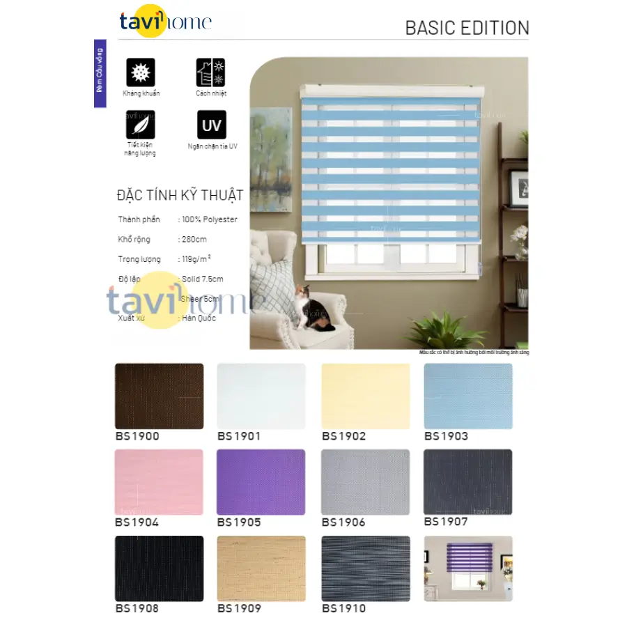 Thông số kỹ thuật của Rèm cầu vồng TAVI SK-BASIC EDITION: